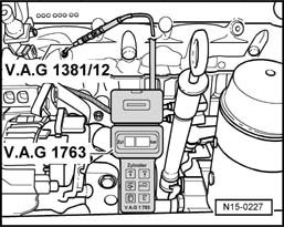 - Screw in adapter V.A.G 1381/12 in place of glow plugs.