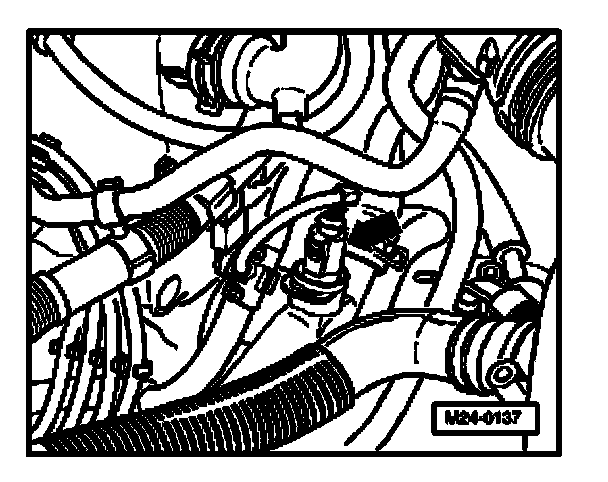 - Disconnect 4-pin connector from Engine Coolant Temperature (ECT) sensor -G62- with Engine Coolant Temperature (ECT) sensor -G2- (arrow).
