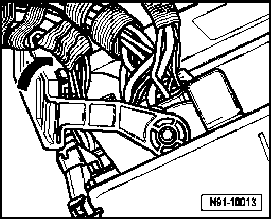 - Rotate mounting bracket up - arrow - and disconnect electrical connection.