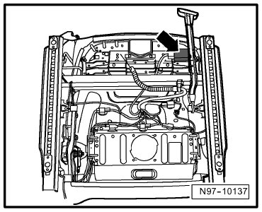 At right front seat support -Arrow-