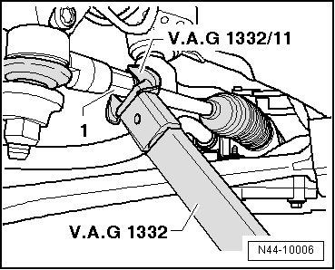 - Tighten lock nut using (V.A.G 1332/11), counter-holding at tie rod end - 1 -.