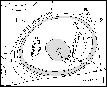 - Remove the cover - 1 - from fuel delivery unit. Arrow - 2 - points in direction of travel.