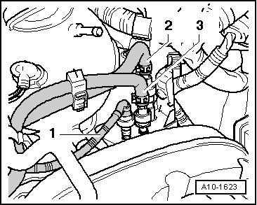 - Remove the fuel supply line - 2 - and catch leaking fuel using a rag.