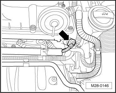 - Disconnect Camshaft Adjustment Valve 1 (N205) electrical harness connector - arrow -.