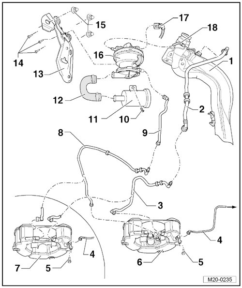 • Vehicles from MY 10: from the connection to the vacuum line between the vacuum pump and the brake booster.