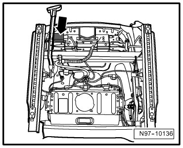 At left front seat support -Arrow-