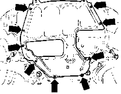 - Remove sound insulation pan - arrows -.