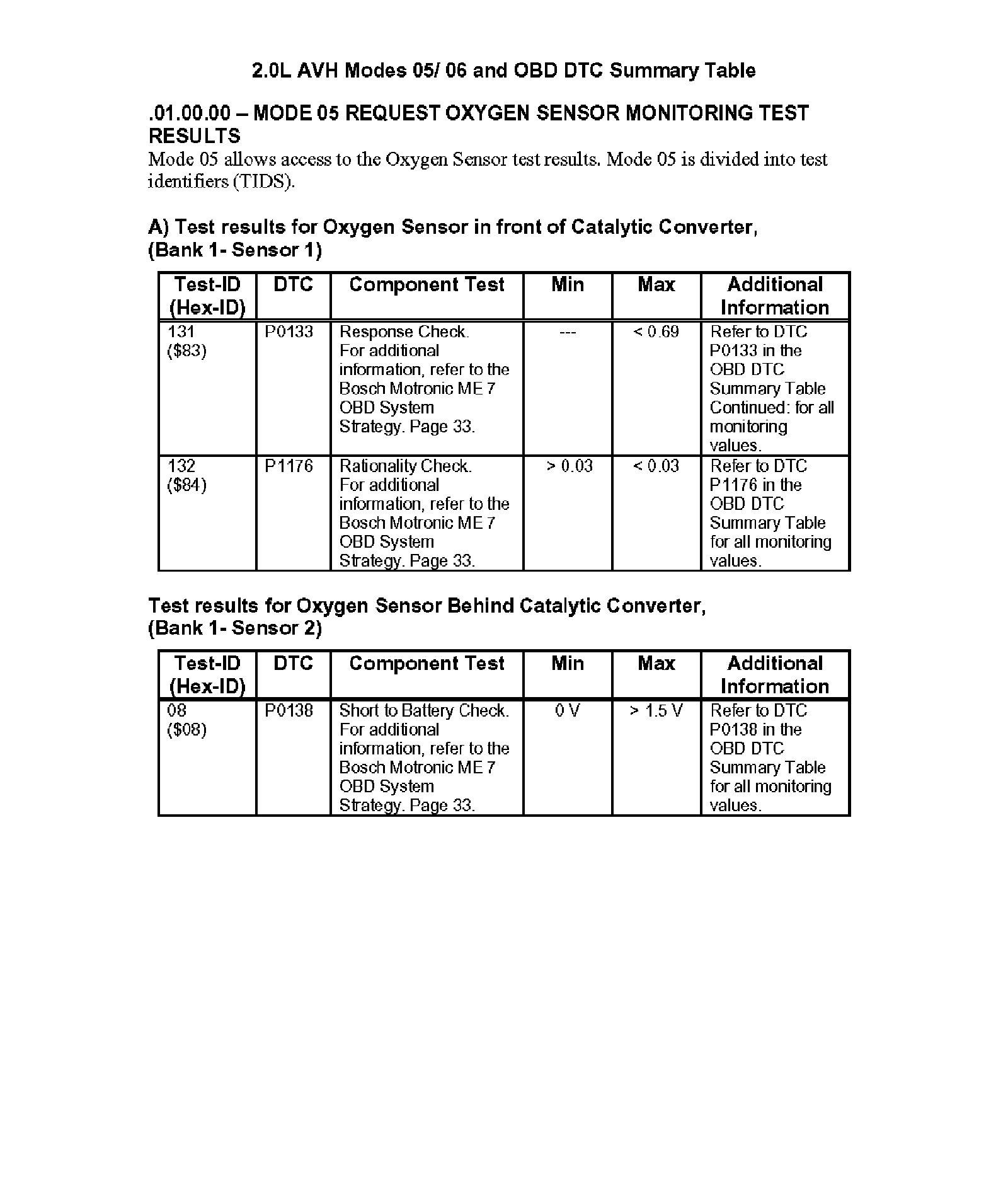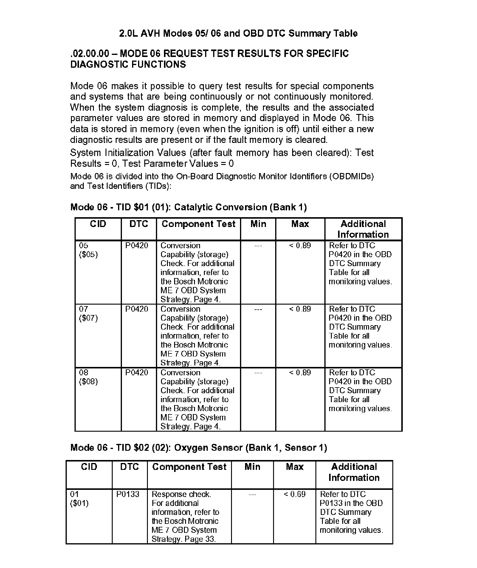 Modes 05/06 and OBD DTC Summary Table