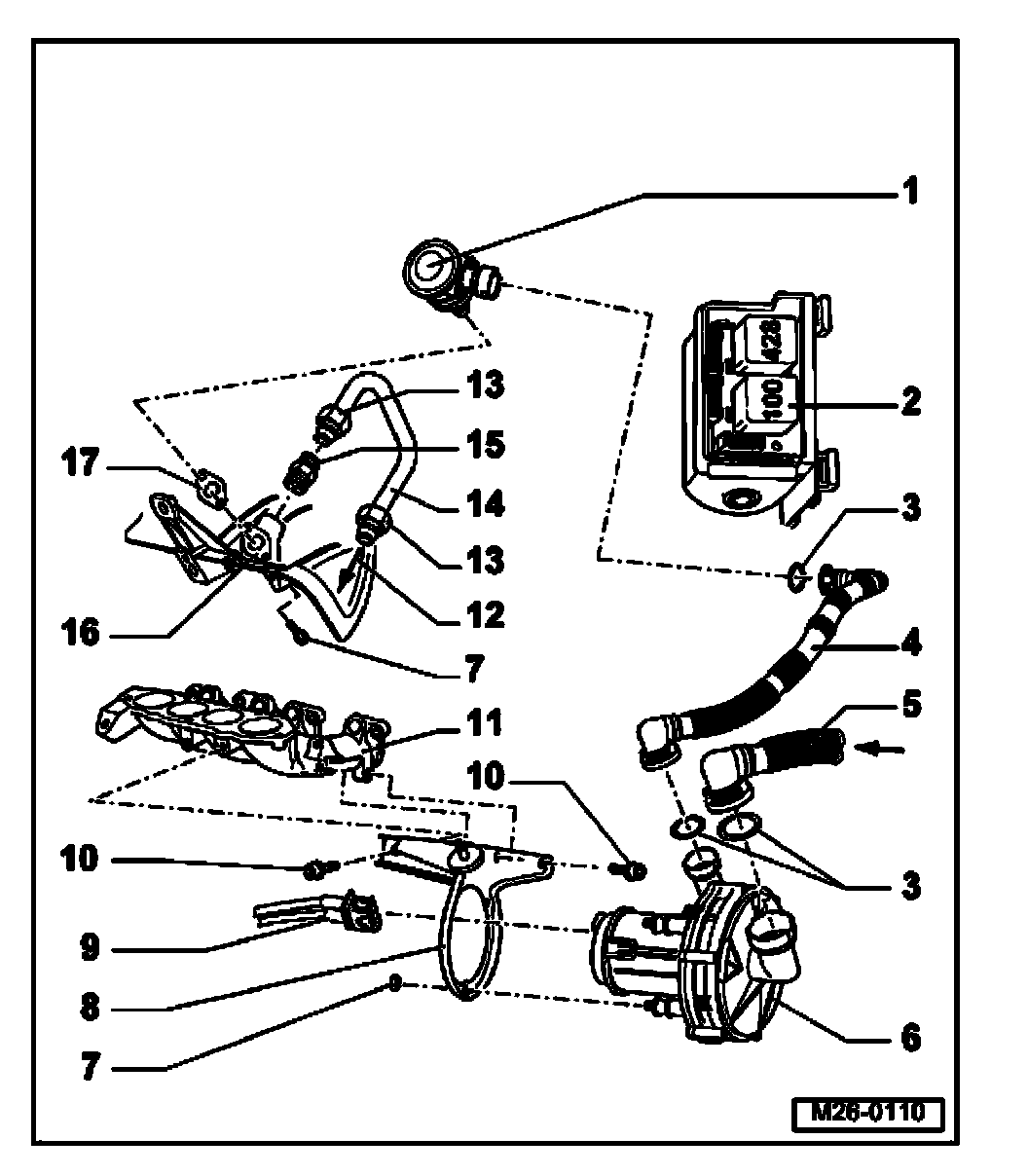 Secondary Air System Components, Assembly Overview (Engine Codes AVH, AZG, BEV, AEG from 06.99)