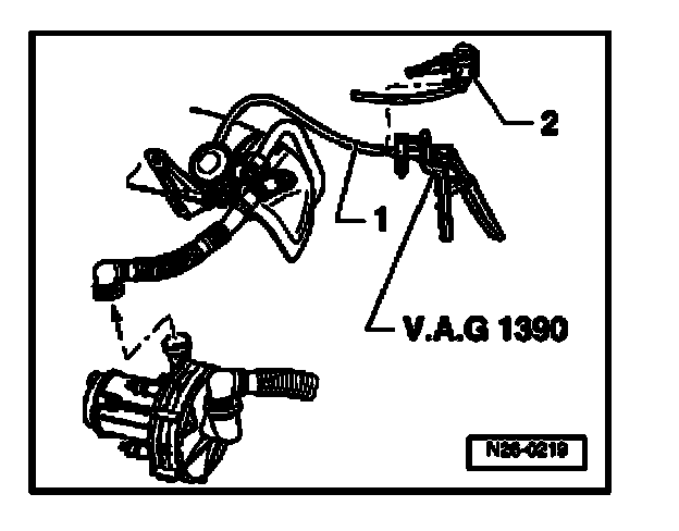 - Connect hand vacuum pump VA.G1390 to vacuum hose -1 -.