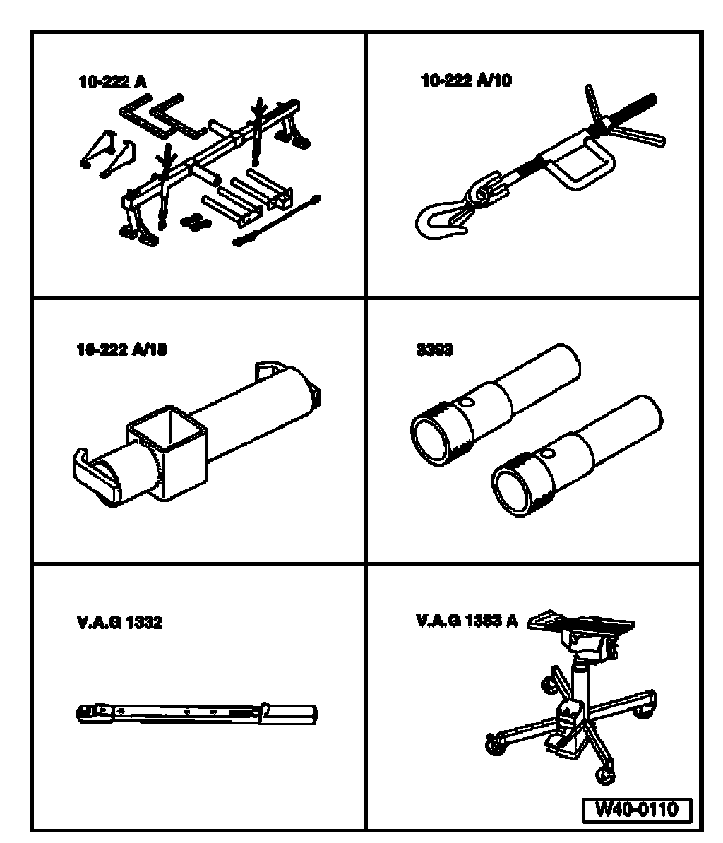 ^ Lower subframe slightly with the engine/transmission jack V.A.G 1383 A.