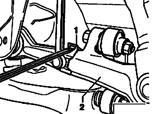 ^ Remove bolts - 1 - and - 2 - at rear of subframe on both sides of vehicle.