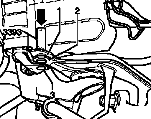 ^ Lift rear of subframe slightly using engine/transmission jack V.A.G 1383 A.