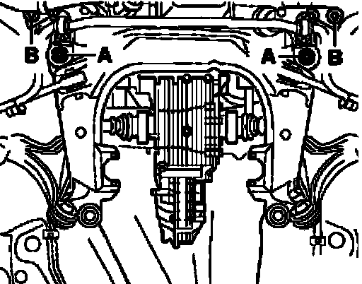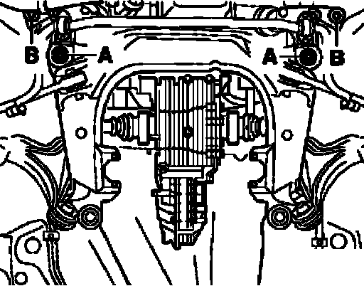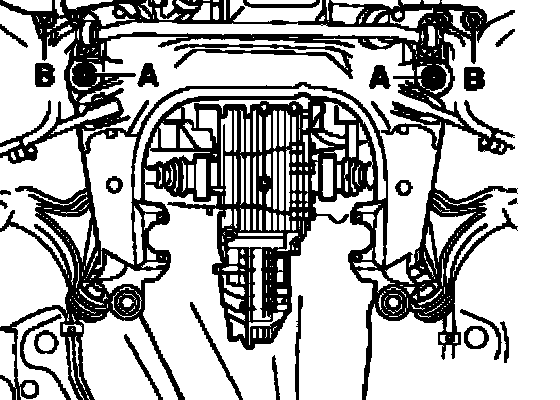 ^ Install subframe and start hex bolts - A - and - B -.