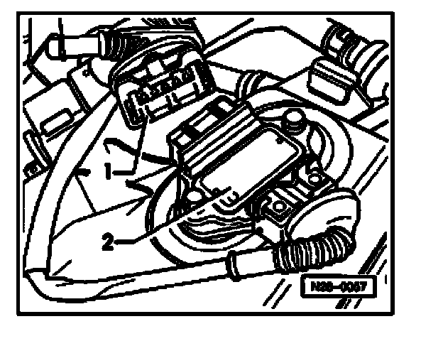 - Disconnect 5-pin connector -1- from power output stage for ignition coils -2-.