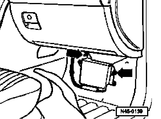 ^ Pull front right floor carpet back until the ABS/ESP control module in area of bulkhead is free.