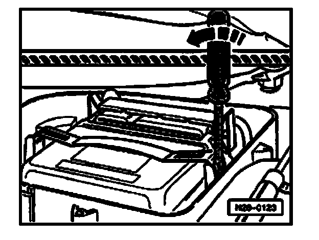 - Carefully pry off the Retainer bar with a screwdriver - arrow -.