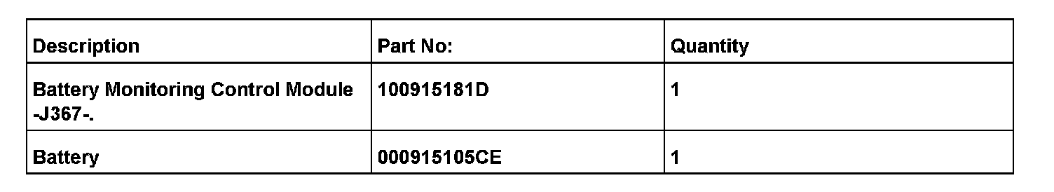 6. If the software level is less than 2700, replace the Battery Monitoring Control Module -J367-. See repair manual Group 27 Battery, Starter,Generator, Cruise control in Elsaweb, and continue with bulletin.