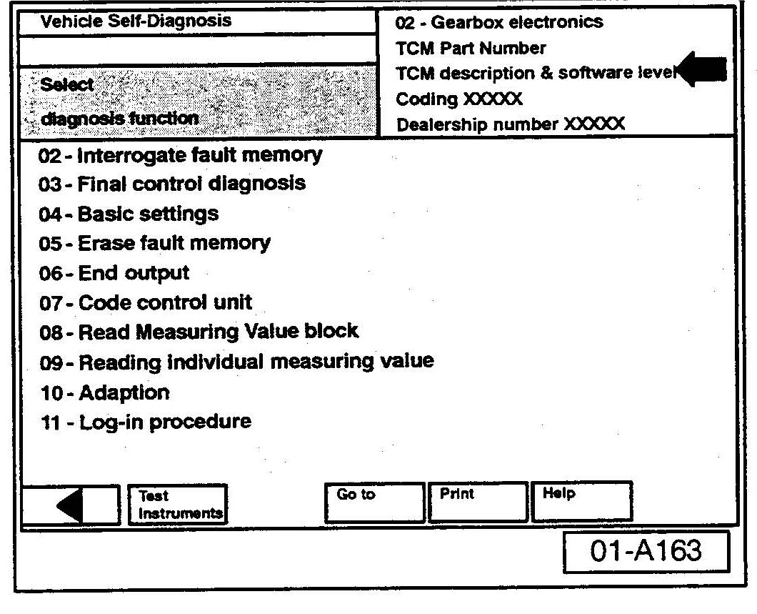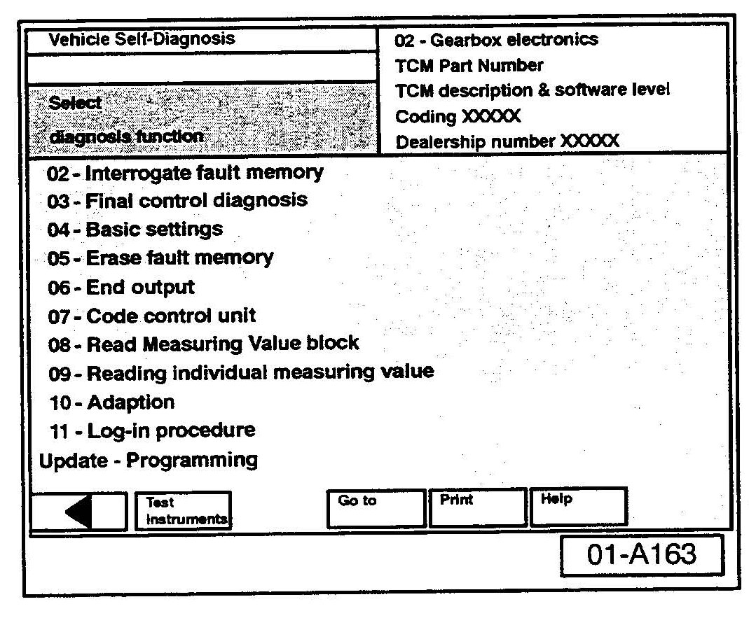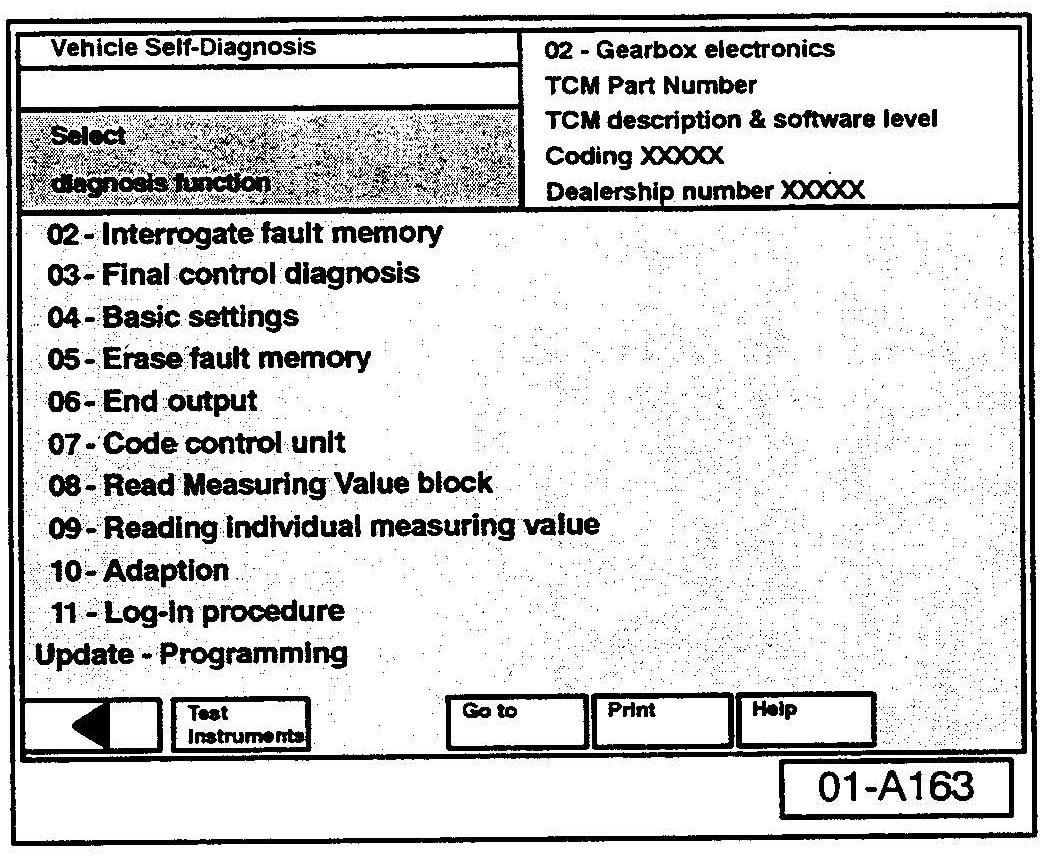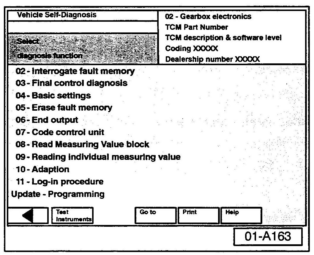- Scroll and select vehicle system "02-Gearbox electronics".