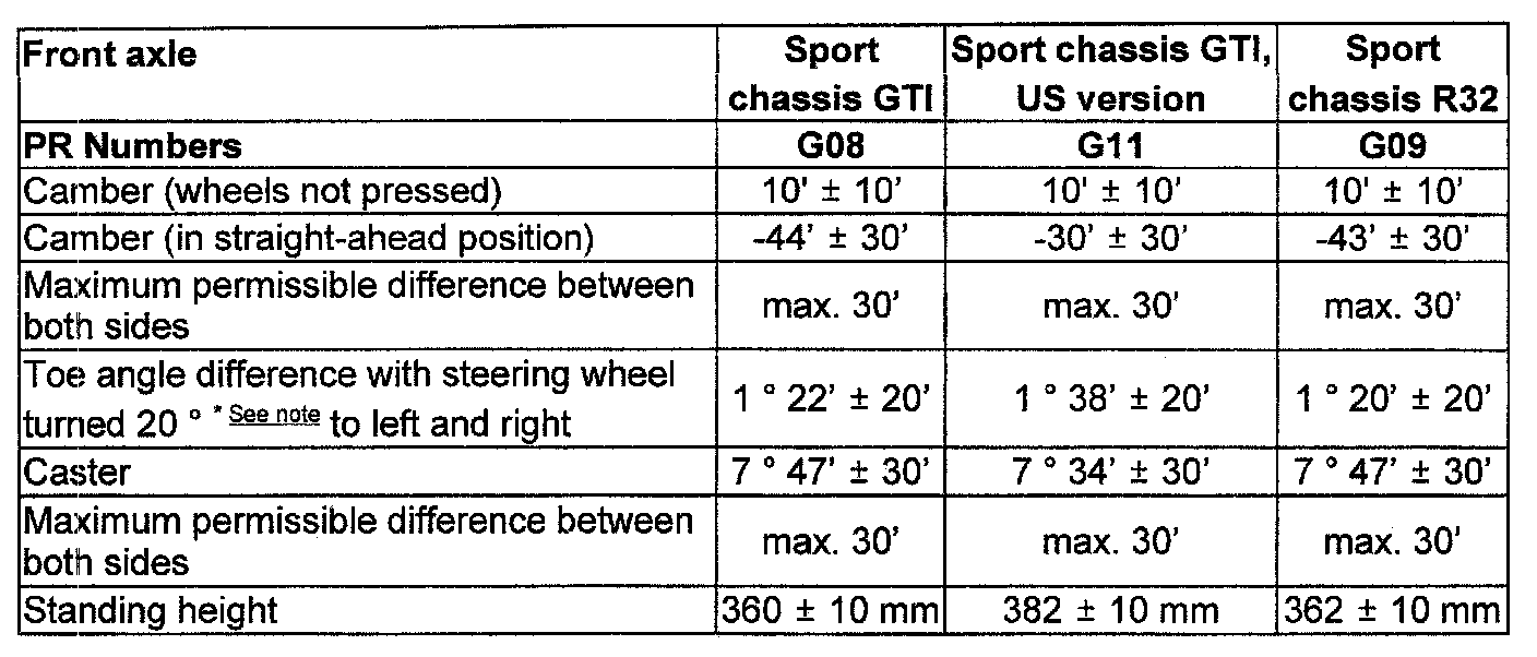 Front Wheel Alignment Specifications