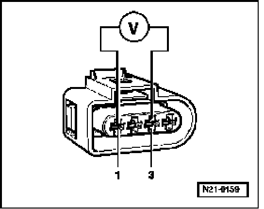 - Use adapter cables from V.A.G1594 to connect multimeter to terminals 1 + 3 of connector for voltage measurement.