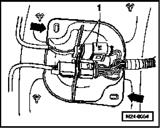 - Remove protective cover (arrows) and disconnect 4-pin harness connector (black) -1- to Oxygen Sensor (O2S) Behind Three Way Catalytic Converter (TWC) -G130-.