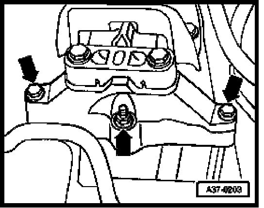 - Remove mounting bolts (arrows) for pendulum support and remove pendulum support.