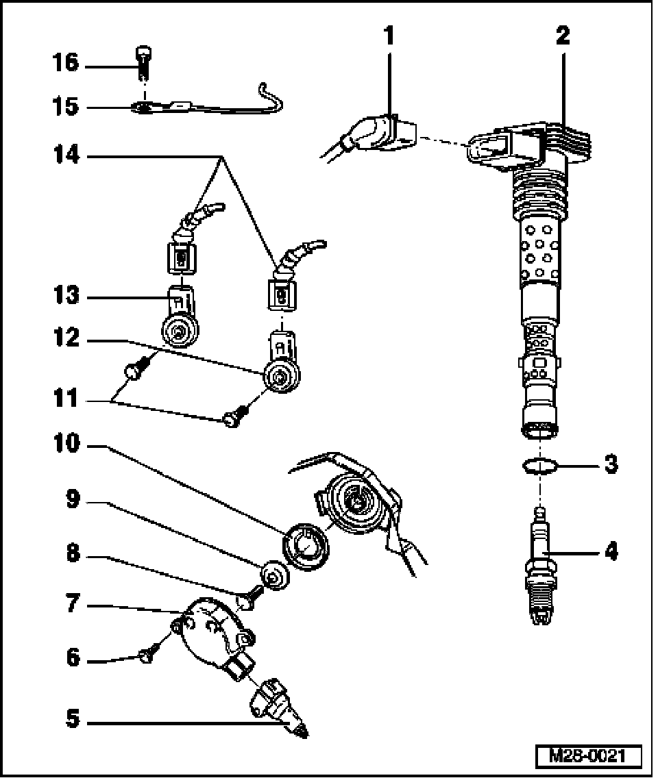 - For ignition coil with power output stage (Ignition Coil 1 with Power Output Stage -N70-, Ignition Coil 2 with Power Output Stage -N127-, Ignition Coil 3 with Power Output Stage -N291-, Ignition Coil 4 with Power Output Stage -N292-)