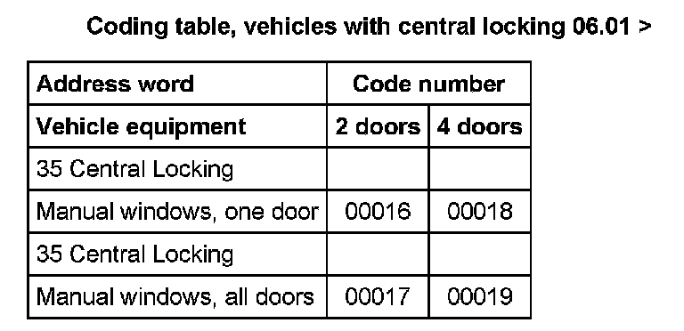 In this case the control module has not been programmed with the relevant data for the vehicle. A check must then be completed to see if the correct control module for the vehicle has been installed (compare Part No. and letter index), or whether an incorrect code number has been entered.