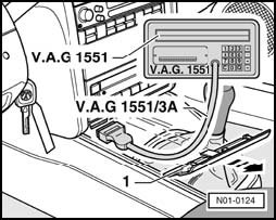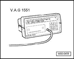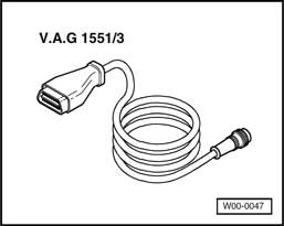 - With ignition switched off, connect V.A.G 1551 to diagnostic connection using cable V.A.G 1551/3 A.