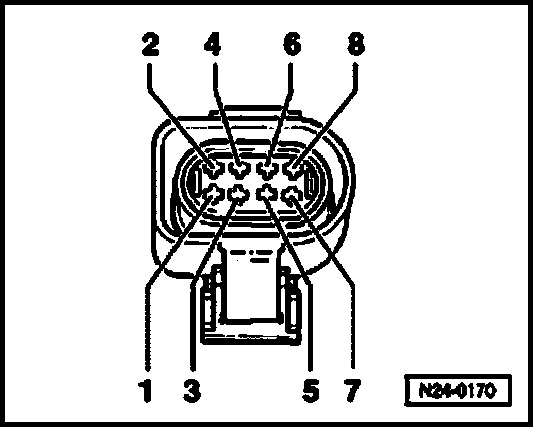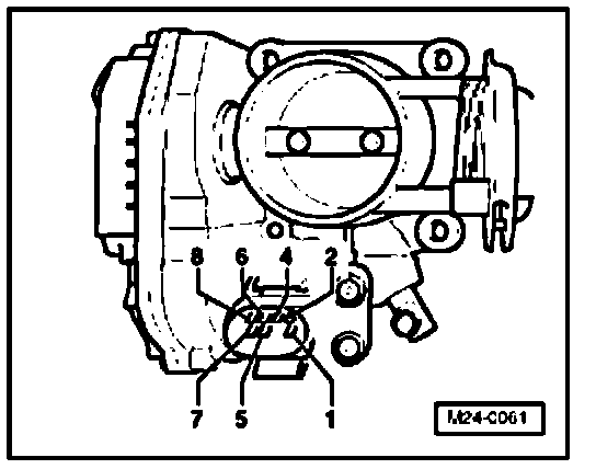 - Measure resistance of Throttle Position (TP) actuator -V60- between the following terminals.