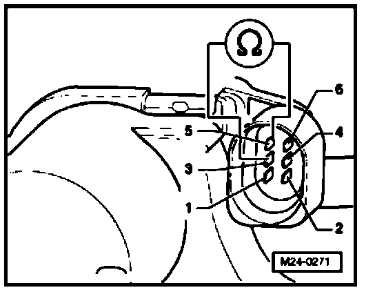 - Connect multimeter to connector terminals 2 + 6 for voltage measurement.
