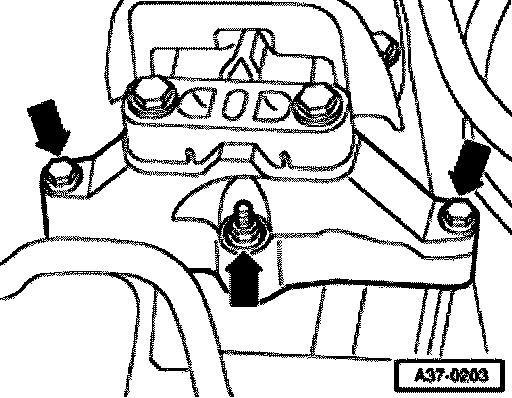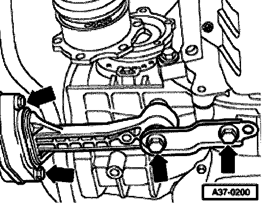 - When transmission has been securely supported, remove bolts for transmission carrier (arrows).