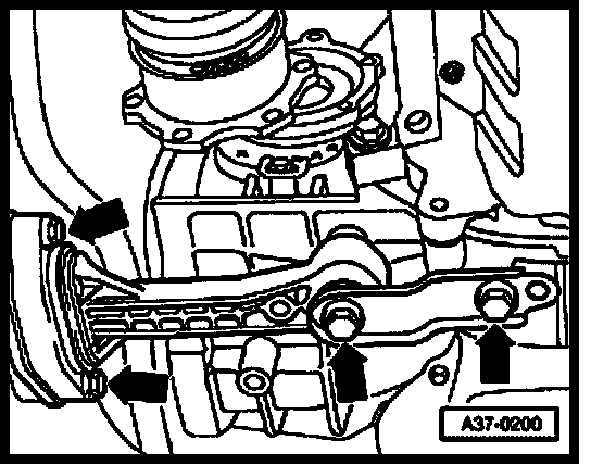 - Remove mounting bolts (arrows) for pendulum support and remove pendulum support.