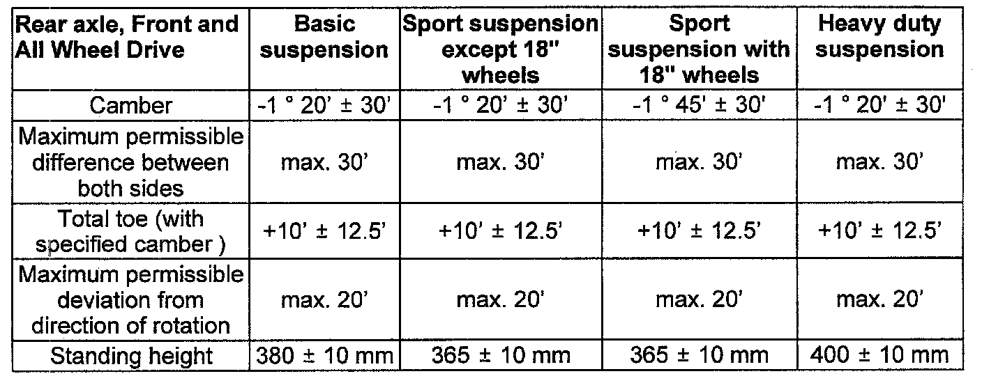 Rear Wheel Alignment Specifications