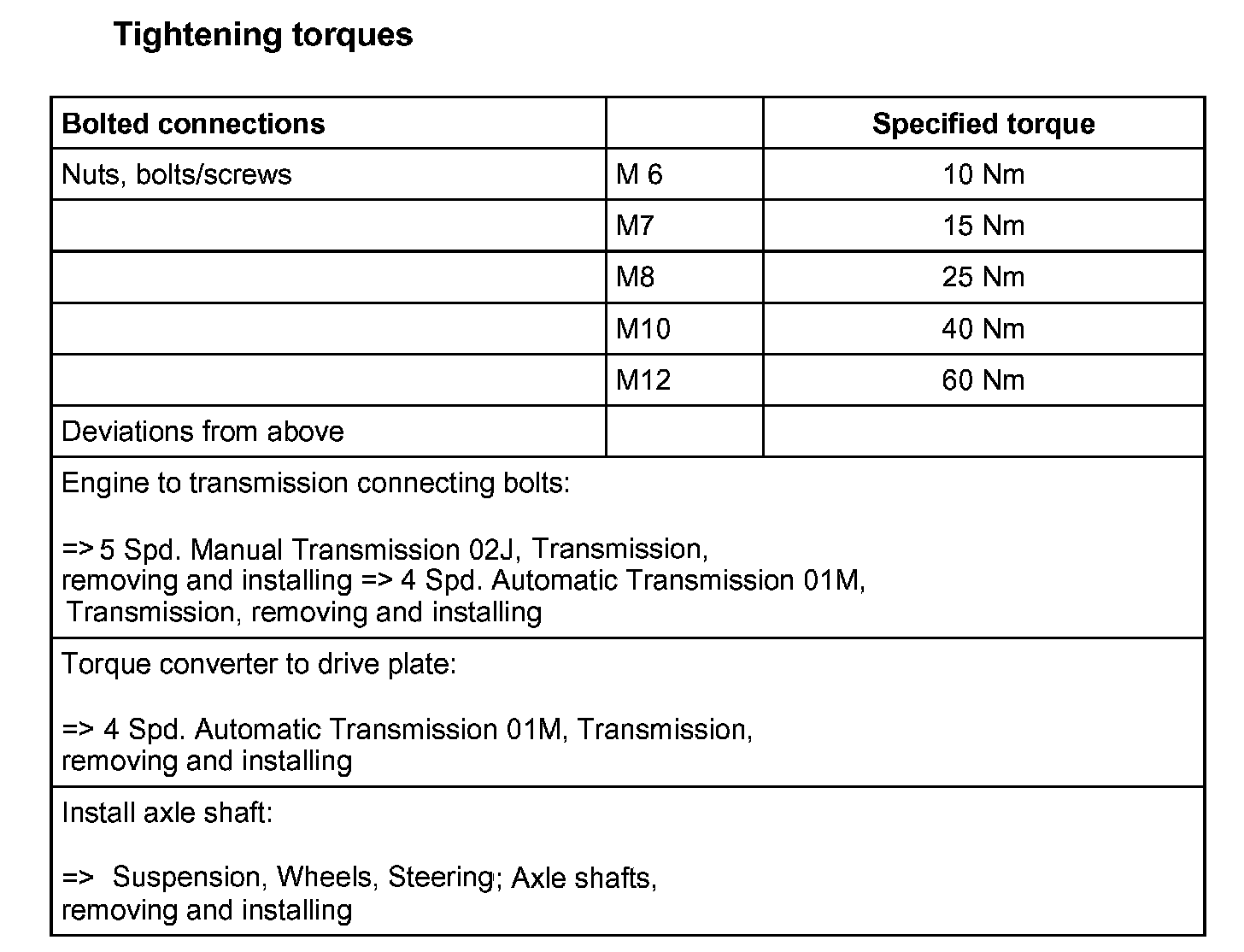 Tightening torques