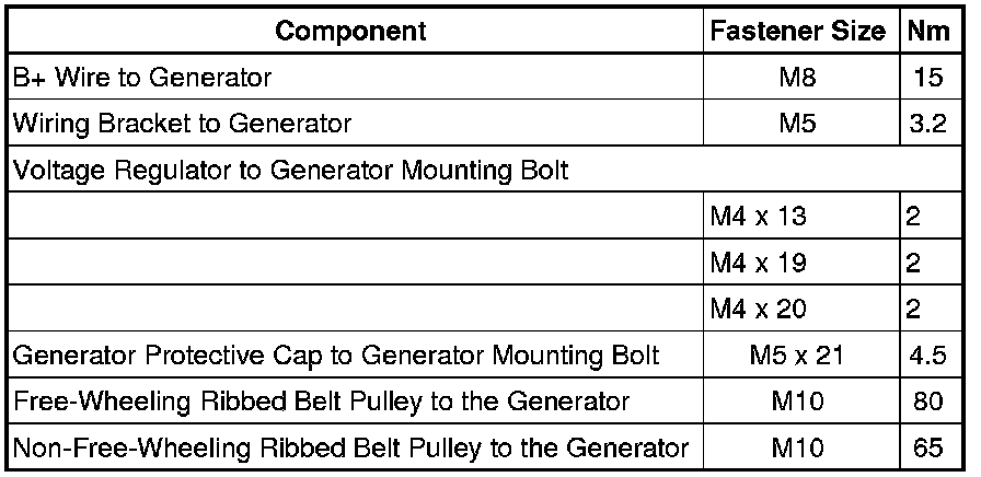 Generator Tightening Specifications