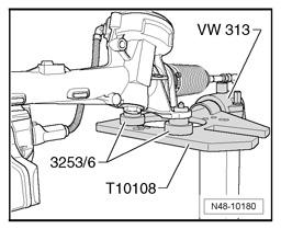 - Tension steering gear using 2 bolts M 10 x 60 as depicted in the illustration.