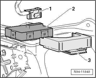 - Disconnect the connector - 1 - and remove the access/start authorization control module - 2 - from its mount - 3 -.