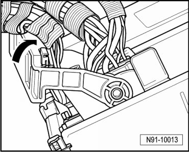 - Then swing mounting bracket up in direction of - arrow - and disconnect harness connector.