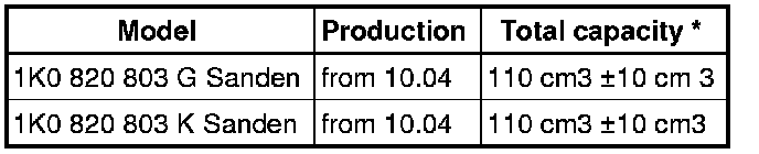 * This quantity of refrigerant oil is in a replacement A/C compressor and equates to the total capacity.