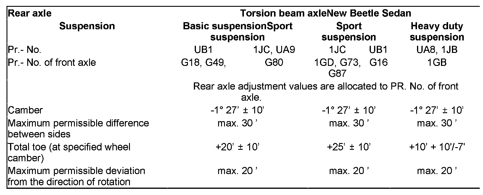 Camber is not adjustable. Only slight corrections are possible by moving the subframe. Adjustment range approx. 10' to 15'