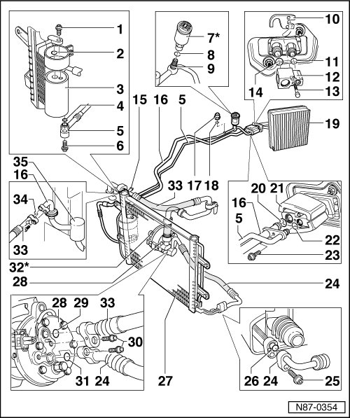 Except where indicated with * all system components illustrated must only be serviced or replaced after discharging refrigerant system.