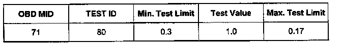 The scan tool may incorrectly indicate the specification of the Maximum Test Limit under Generic OBD II Service $06, MID 71.See table below.