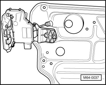 - Remove bolts - 1 -, - 3 - and nut - 2 -. Remove upper subframe from door, lift and lift out from door toward hinge side of door.