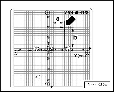 Distance - a - is distance between Automatic Cruise Control (ACC) sensor (G550) mirror and ACC adjustment tool (VAS 6041) / adjustment tool (VAS 6430) measuring field