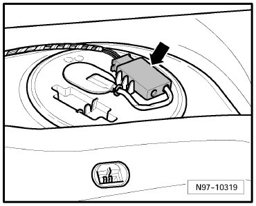 Below rear seat, right, on fuel delivery unit -Arrow-