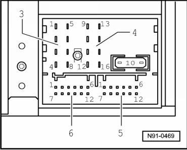 6 CD changer, DATA OUT (data exchange for CD changer control from radio navigation system to CD changer)