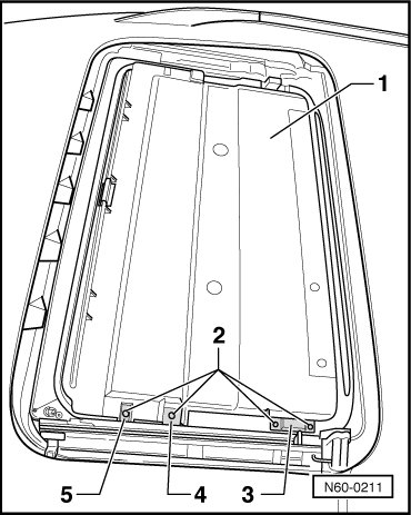 - Push back roof trim slightly - 1 - and remove slider - 5 - from guide.