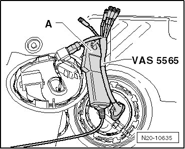 - Install the (VAS 5565) between the connectors on the fuel delivery unit and cover.